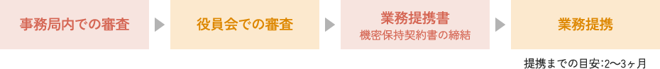 提携に際しては、会社の提携サービス・提携内容を踏まえて当組合にて審査をさせていただきます。