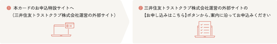 - 入会審査、カードお届け、ご利用明細発行、引き落としはすべて三井住友トラストクラブ株式会社側で行います。