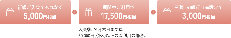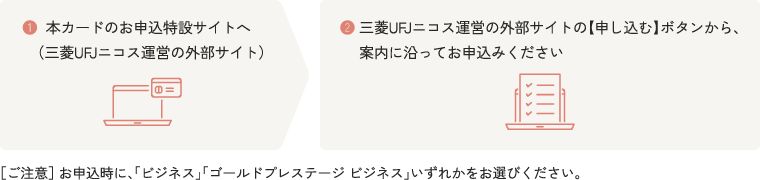 その他のページからお申込された場合、特典は適用されません。 - カード付帯サービスの詳細は、三菱UFJニコス株式会社のページやカード送付時にあわせてお送りするご案内でご確認ください。