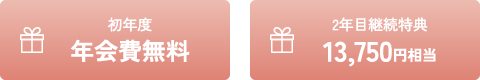 【さらに】初年度年会費無料+2年目継続で13,750円相当のポイントプレゼント(2,750ポイント)