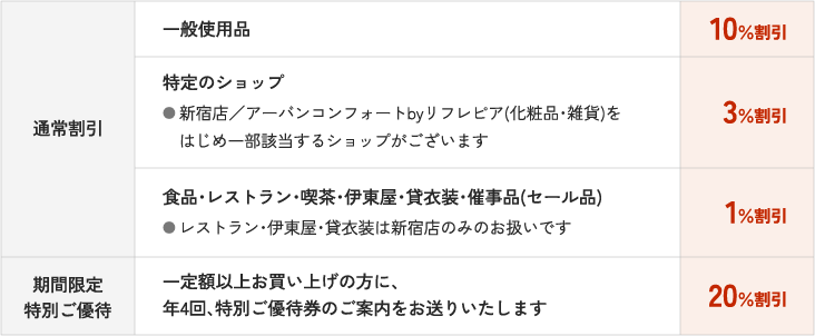 - Aクレジット払いはもちろん、現金でのお買い物でも同様の割引特典が受けられます。
