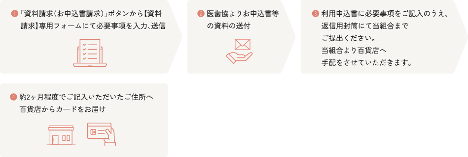 通常はご紹介制の外商カードですが、当組合会員の先生は医歯協経由なら特別にお申込みいただけます。