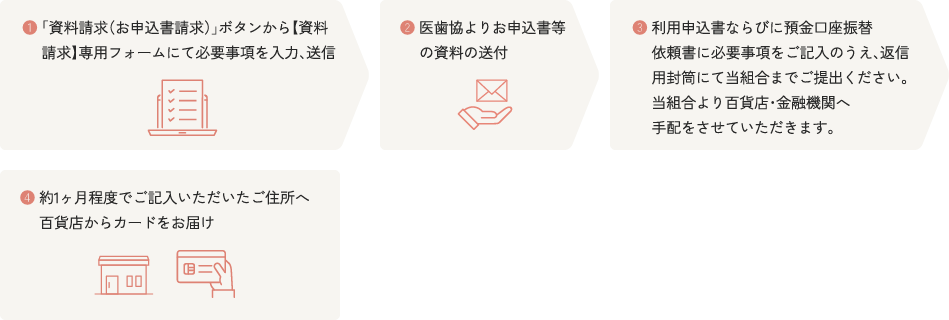 なお、領収証の発行日は、売場でのお買い上げ日ではなく、当組合が口座振替によりご利用代金を引落しさせていただいた日となります。 - カード名義および引落口座名義は、個人のものに限ります。医院名や法人名では作成できません