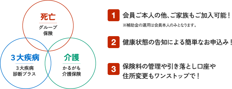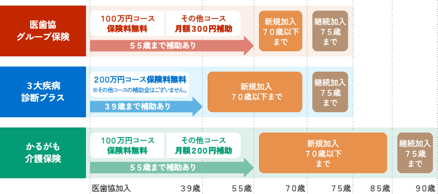 将来の医療を支える若い世代の会員様を対象に団体保険の保険料を一部または全額補助する制度です。