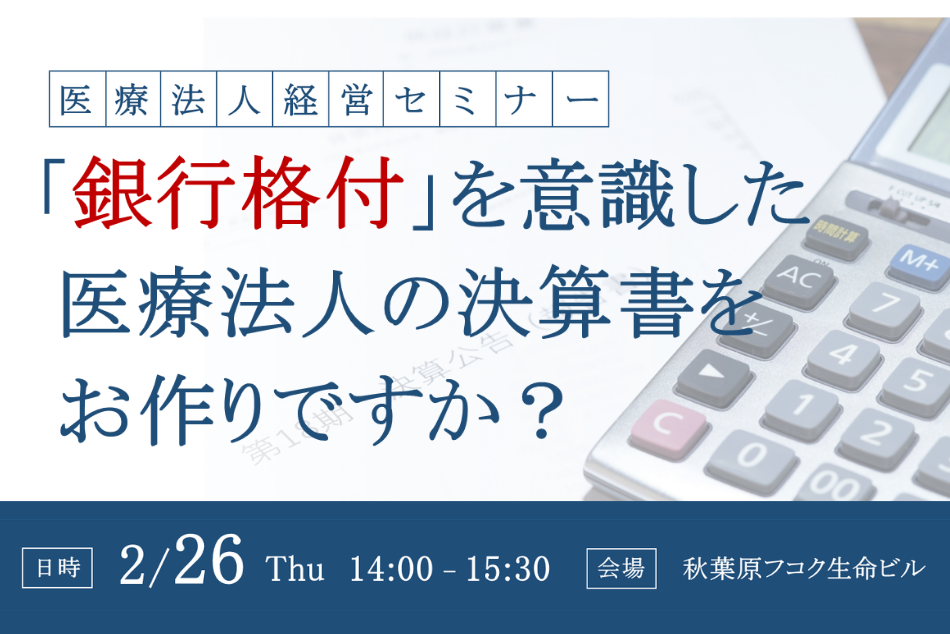「【医療法人経営セミナー】銀行格付を意識した医療法人の決算書をお作りですか?」