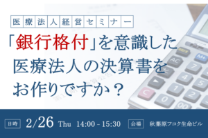 【医療法人経営セミナー】銀行格付を意識した医療法人の決算書をお作りですか?